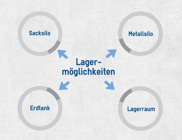 Neben den Säcken werden die Pellets auch lose verkauft. Diese Variante ist deutlich kostengünstiger. Zudem müssen die Pellets nicht stetig nachgekauft werden. Je nach den Gegebenheiten im Haus bieten sich verschiedene Lagerungsmöglichkeiten an. Wichtig ist, dass der Schlauch des Silofahrzeuges nicht länger als 30 m ist – der Lagerort sollte also nah an der Straße liegen.