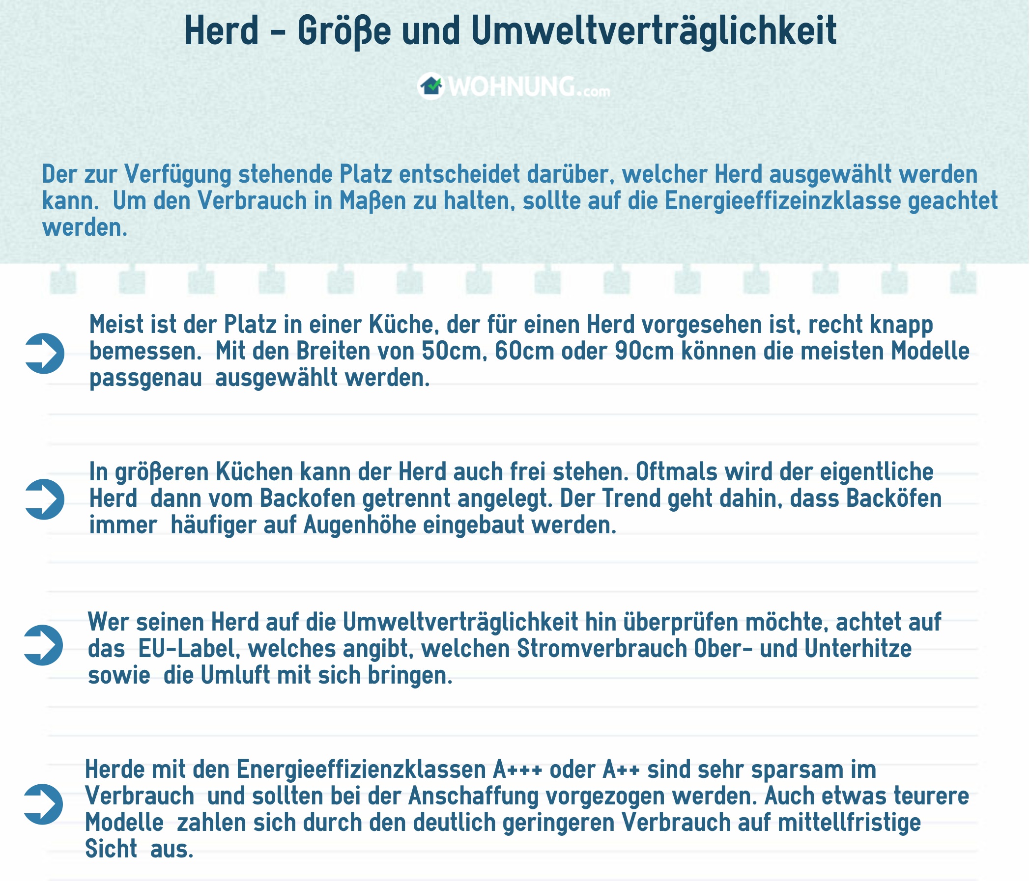 Mieter, die sich einen Herd kaufen wollen, sollten sich darüber im Klaren sein, welches Kochfeld ihr neuer Küchenhelfer haben soll. Außerdem müssen sie sich zwischen einem frei stehenden und einem Einbauherd entscheiden. Wer Stromkosten sparen möchte, sollte zudem auf die Energieeffizienzklasse achten.